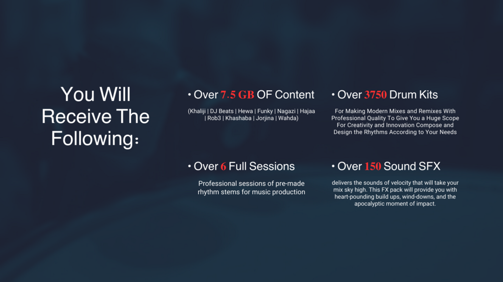 2. Receive over 100 GB of premium rhythmic content covering all modern Khaliji rhythmic styles.