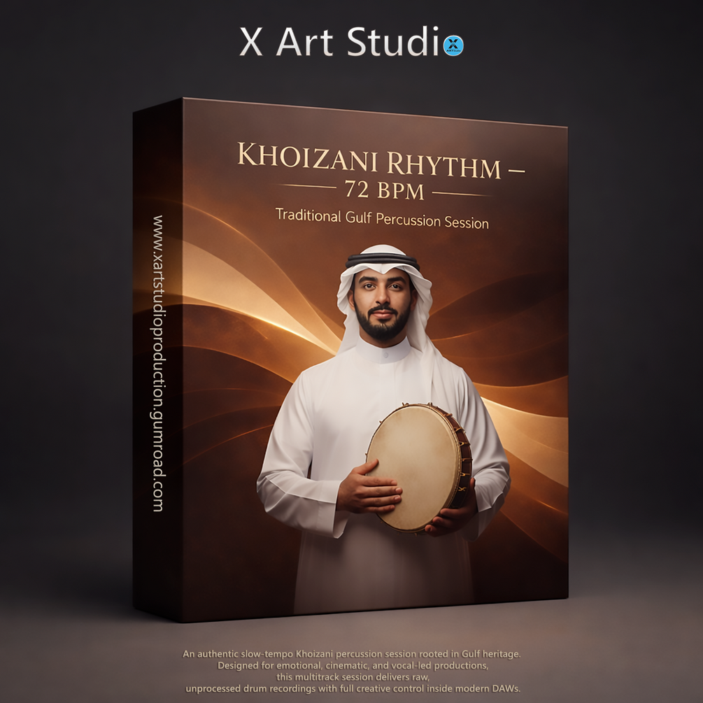 An authentic slow-tempo Khoizani percussion session rooted in Gulf heritage. Designed for emotional, cinematic, and vocal-led productions, this multitrack session delivers raw, unprocessed drum recordings with full creative control inside modern DAWs.