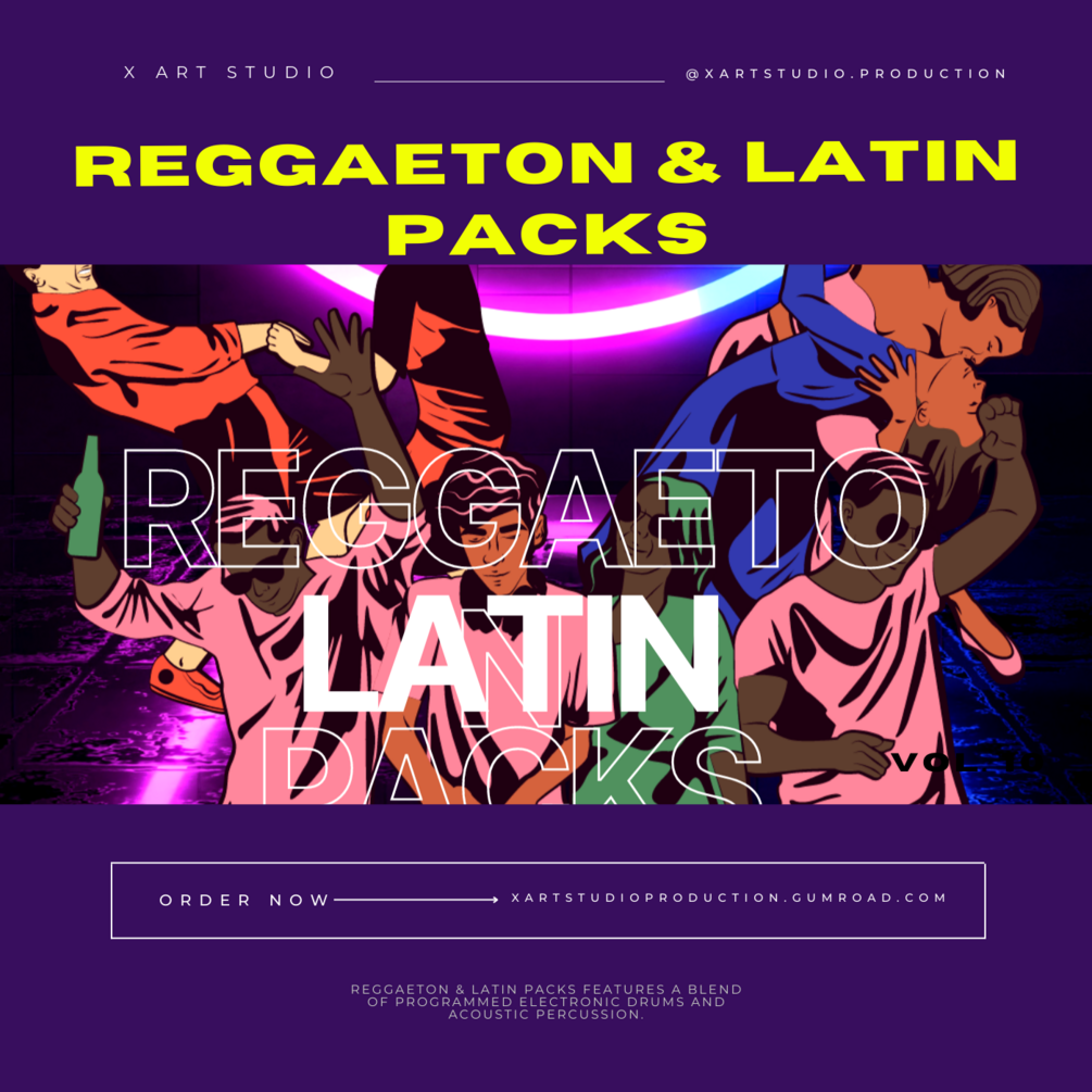 "Reggaeton & Latin Packs" features a blend of programmed electronic drums & acoustic percussion. The electronic elements include kicks, snares, rims, hihats, claps, Pre-mixed ready-to-use drum loops are provided, as well as single track loops for each individual element allowing you to customize your own drum & percussion mix.
